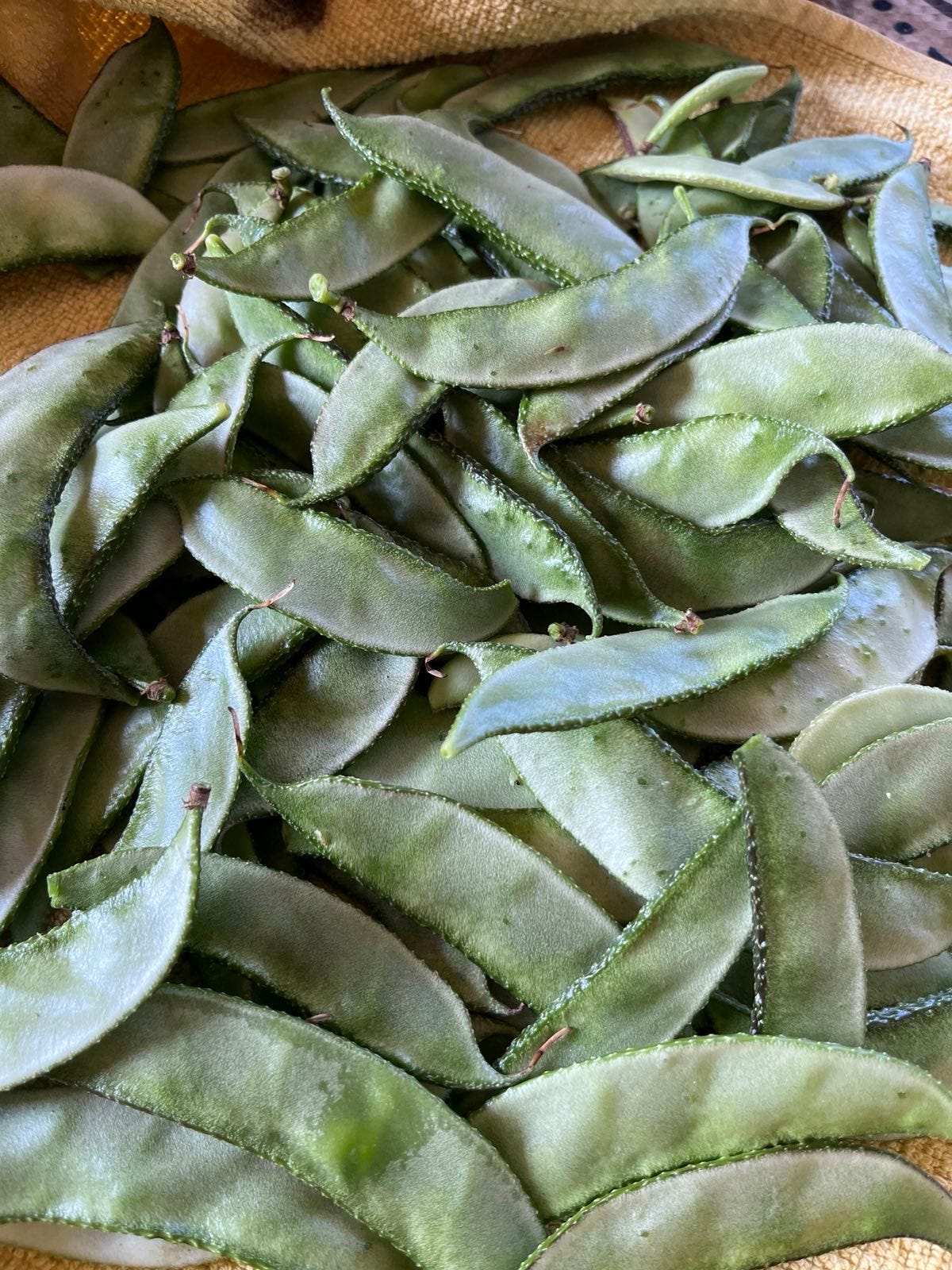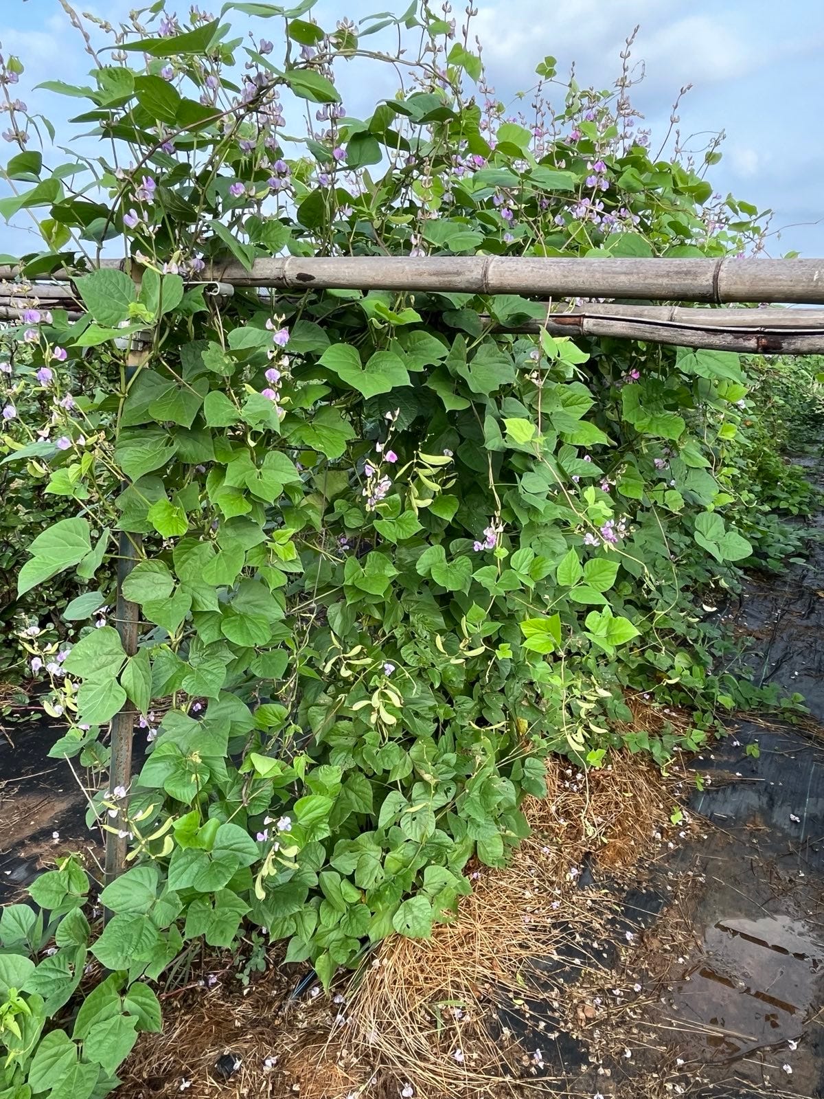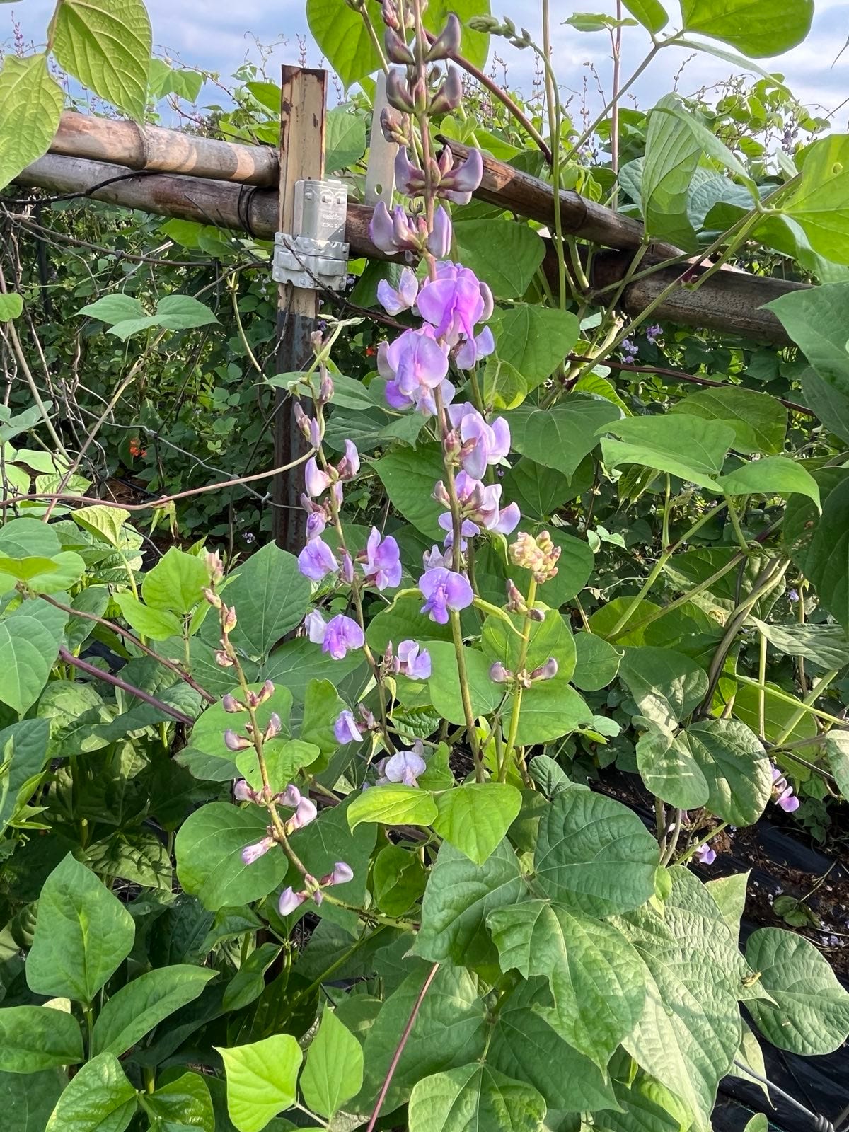I kept looking for bush varieties of the vigorous flat hyacinth vining plants thinking they were easier to manage but the truth is, it is harder to harvest a bush variety bean plant bent over because of the weight than a vining plant.