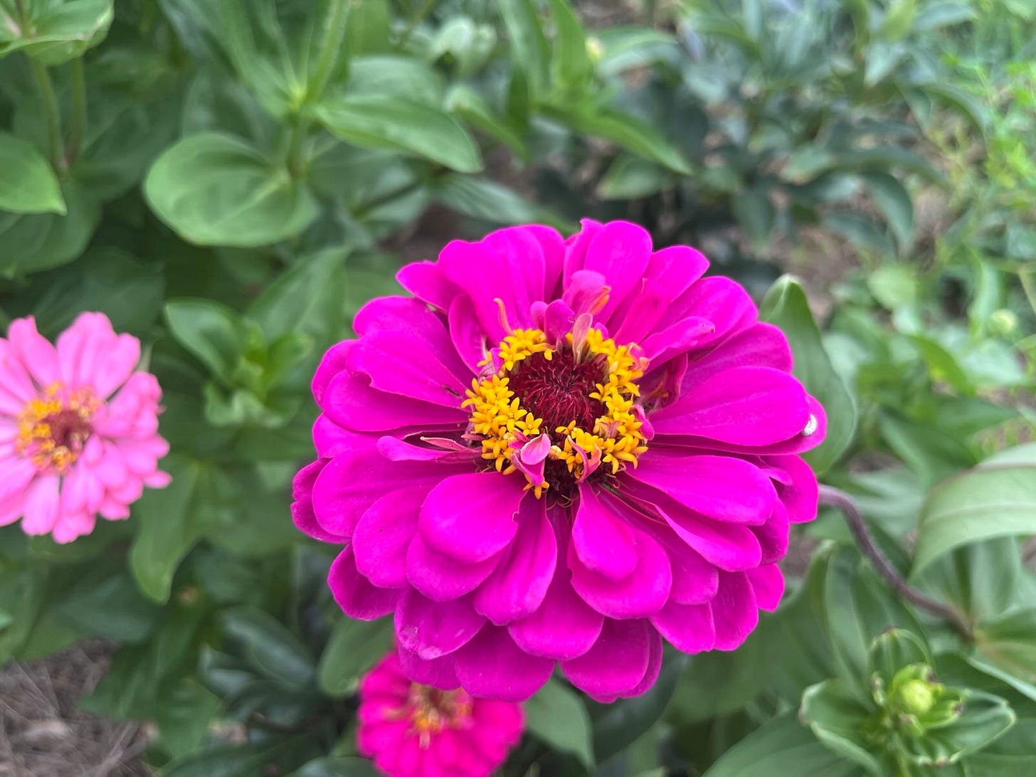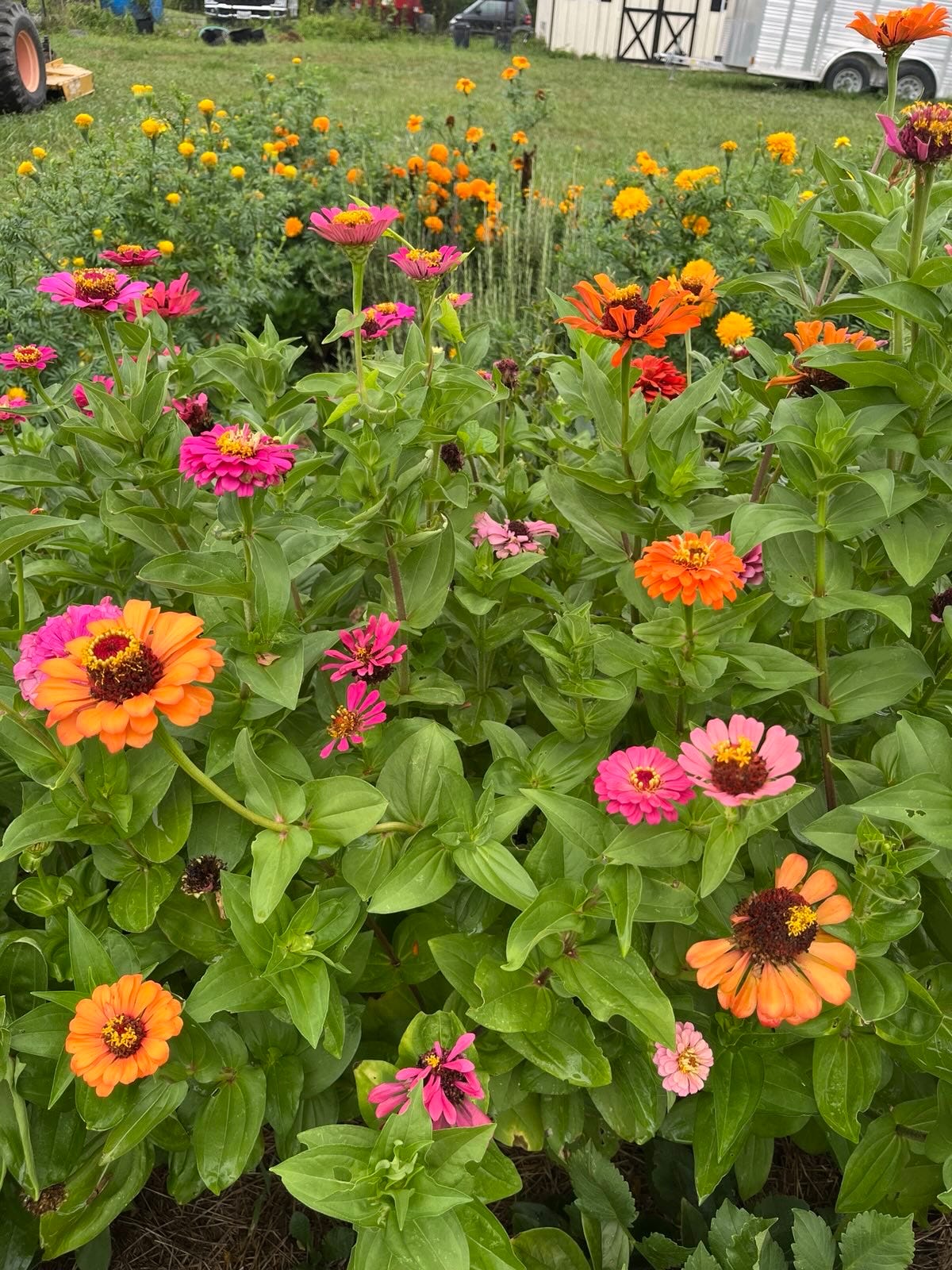 Growing vegetables is time-consuming, so I don’t get ambitious. A few colorful flowering plants are all I need. I planted a few zinnia seeds.